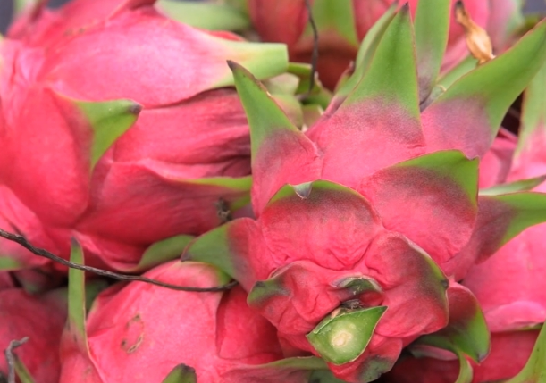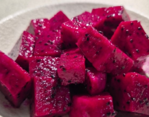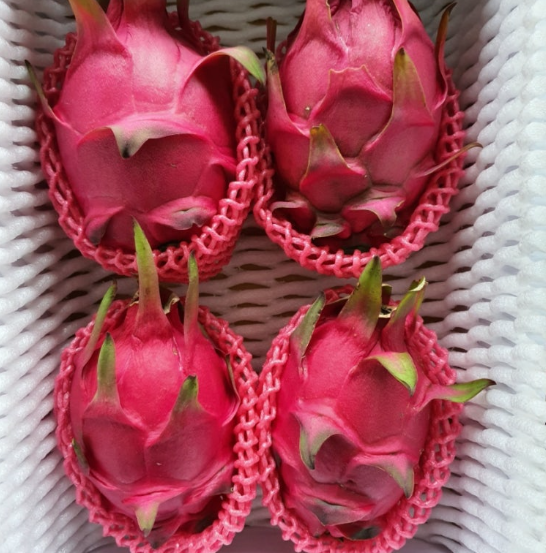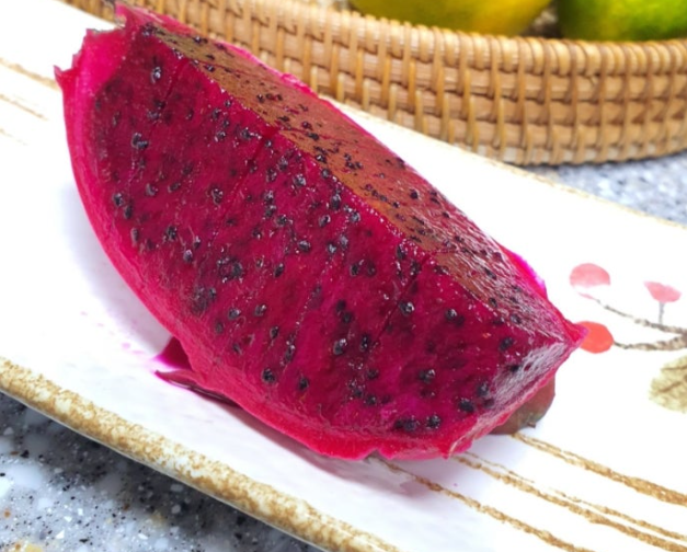 홍용과 (생과) 껍질과 과육 모두 붉은 색을 띠며, 부드럽고 달콤한 열대과일. 신선한 상태로 구매 가능.
