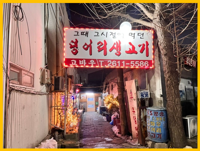 바로 ‘고바우’, 일명 ‘금순 할매의 연탄불 돼지갈비집’으로 불리는 곳입니다.