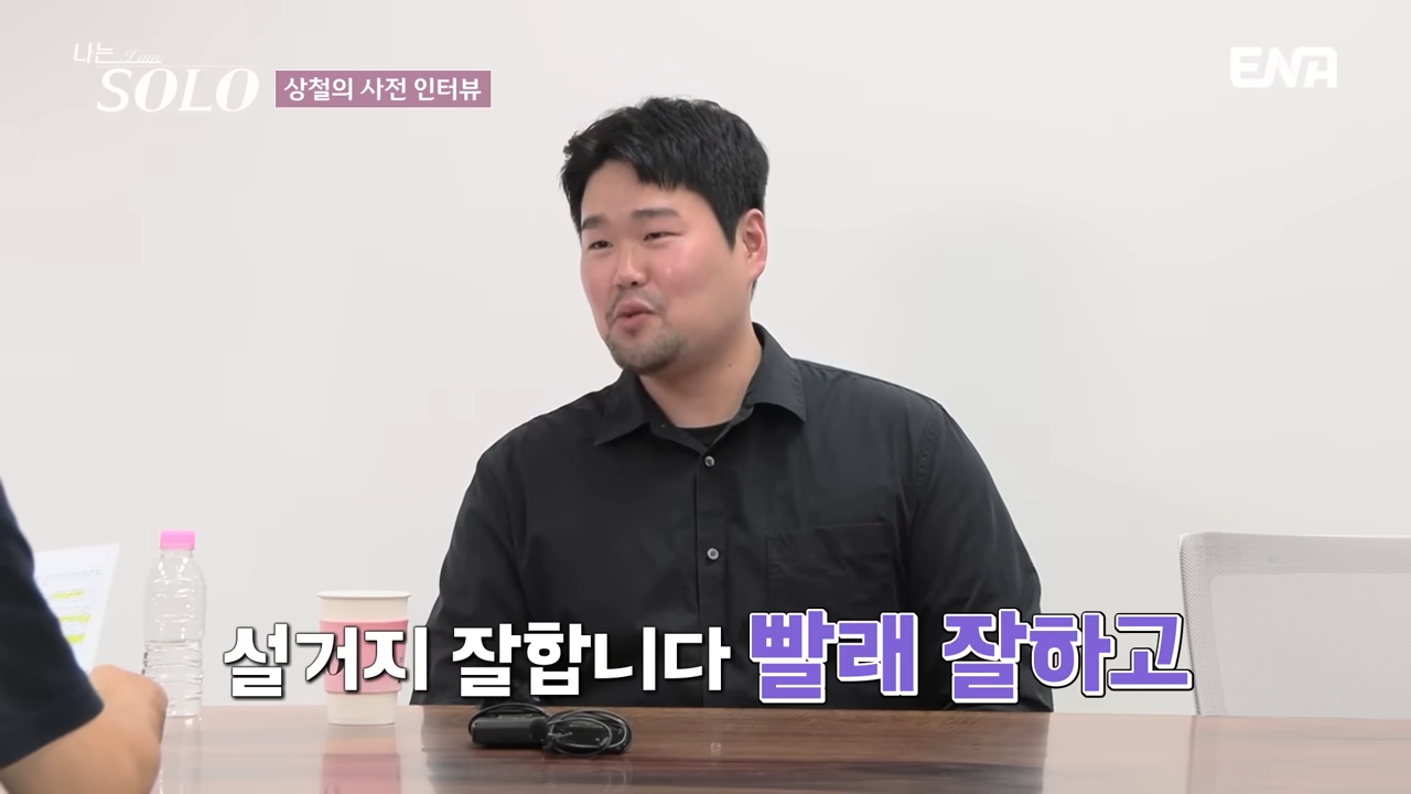 네 번째 출연자인 영철은 한눈에 “묵직한 남자” 분위기를 풍깁니다.