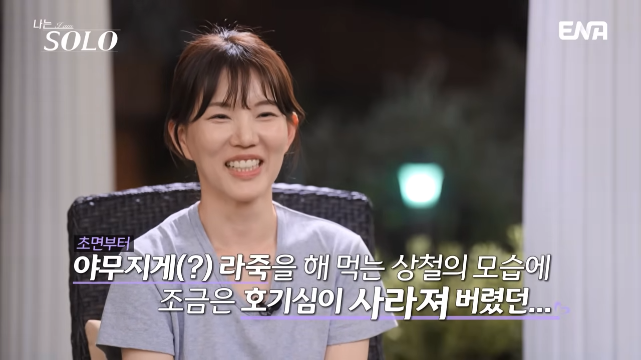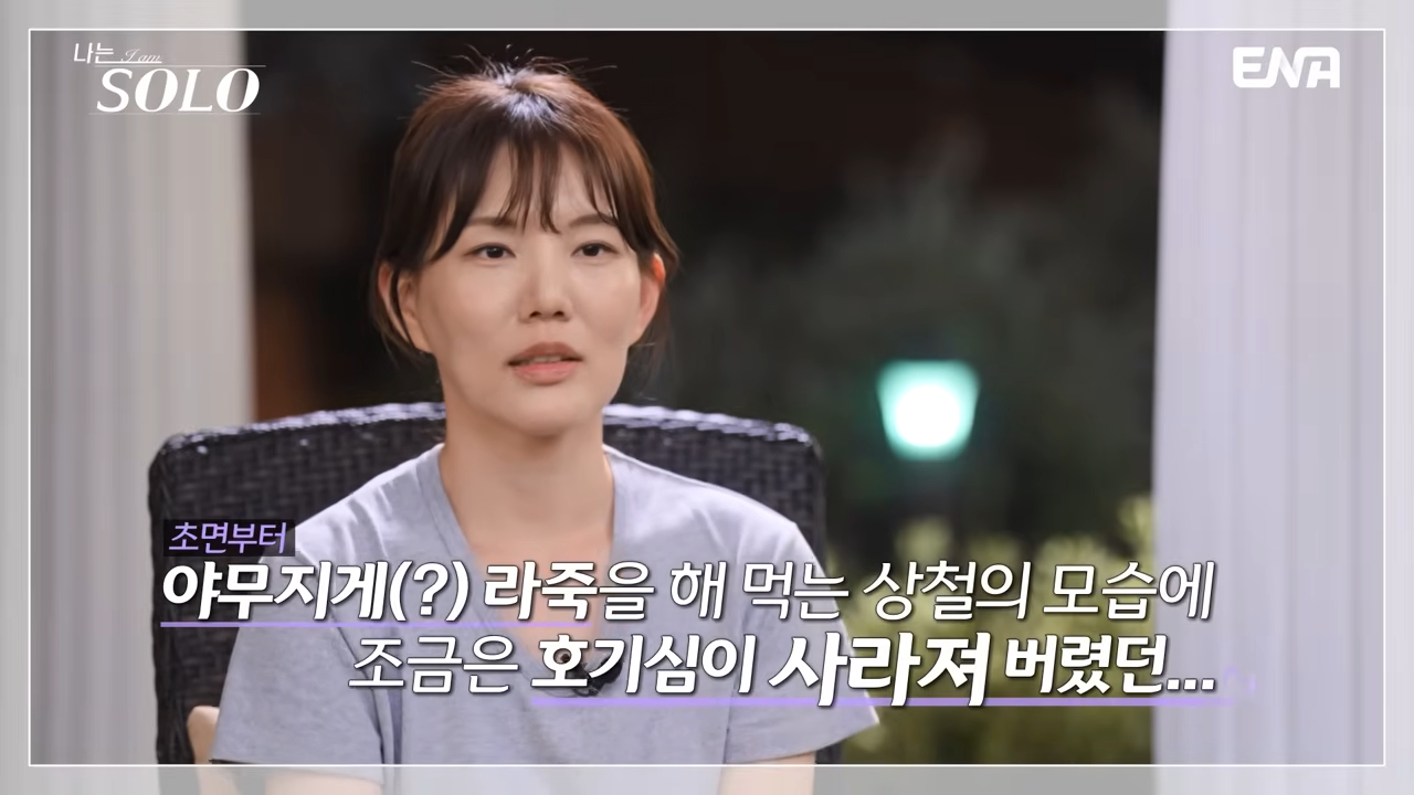 현숙은 상철의 행동을 가볍게 본 것은 아니었지만, 상철이 라죽(라면 형태 죽)을 먹는 장면에서는 작은 실망을 느꼈다고 말했습니다.