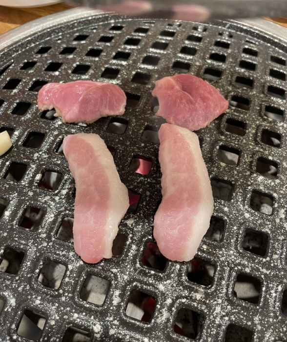 굽기 전부터 고기의 결과 상태가 눈에 띄게 좋고, 숯불 위에서 올라오는 은은한 향이 고기에 배어들며 깊은 맛을 완성합니다.