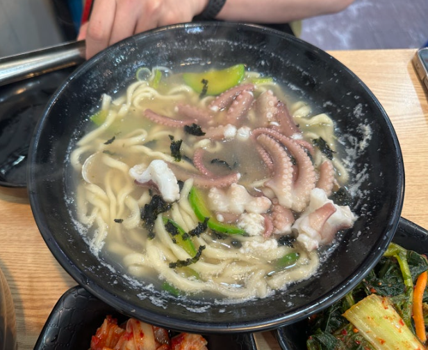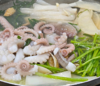 연포탕으로 이미 깊어진 국물에 칼국수면을 넣으면 그 맛은 더욱 풍성해지며, 바다의 향과 낙지 본연의 단맛이 면에 스며들어 씹을 때마다 은근한 감칠맛이 살아납니다.