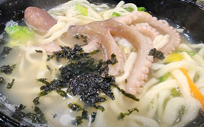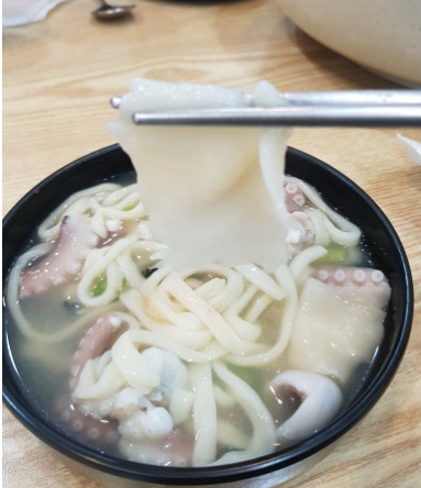 연포탕으로 이미 깊어진 국물에 칼국수면을 넣으면 그 맛은 더욱 풍성해지며, 바다의 향과 낙지 본연의 단맛이 면에 스며들어 씹을 때마다 은근한 감칠맛이 살아납니다.