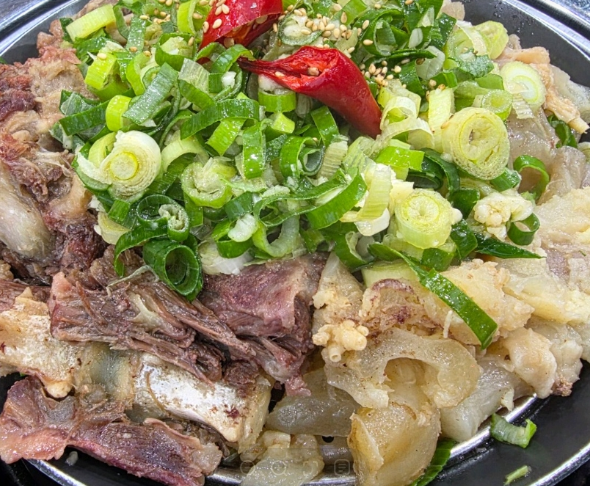 하나는 오직 소꼬리만을 넣어 24시간 이상 푹 고아내 깊고 구수한 맛을 살린 국물이고, 다른 하나는 사골·반골·도가니·우족을 넣어 우려낸 담백하면서도 깔끔한 사골육수입니다.