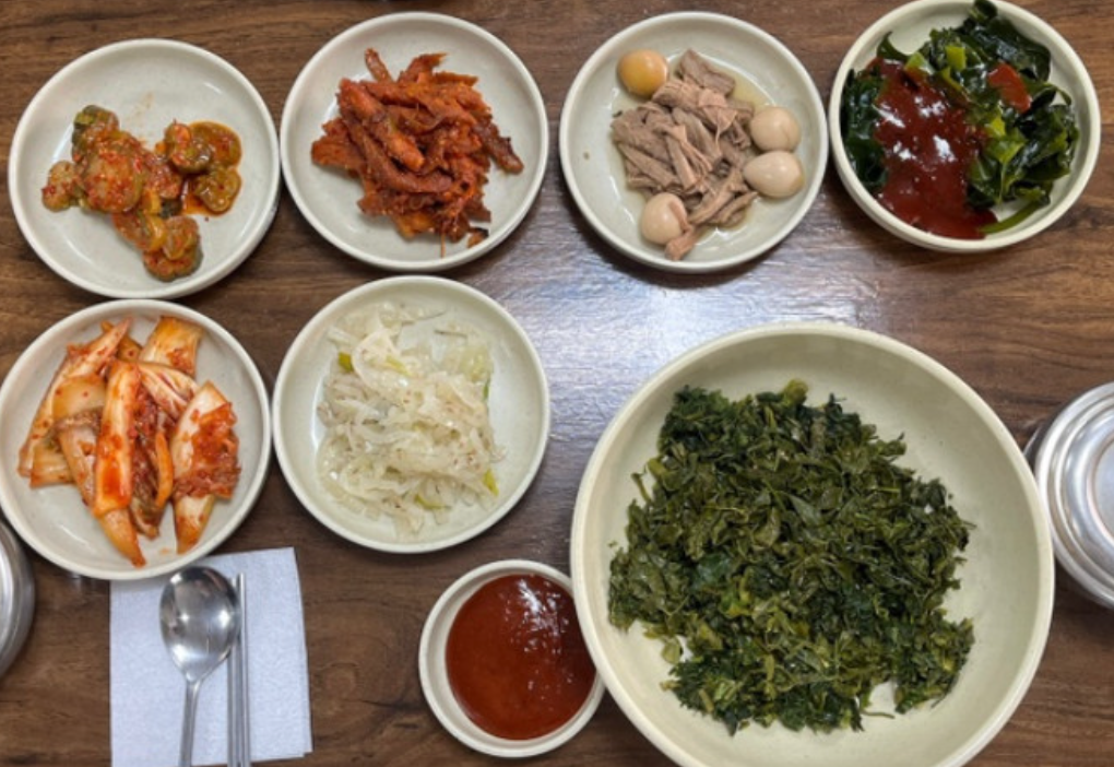 제철 산나물과 정갈하게 무친 반찬들, 신선한 재료로 직접 담근 김치가 기본 상에 정성스레 차려지며, 한식 특유의 따뜻함과 깊은 손맛이 그대로 전해집니다.