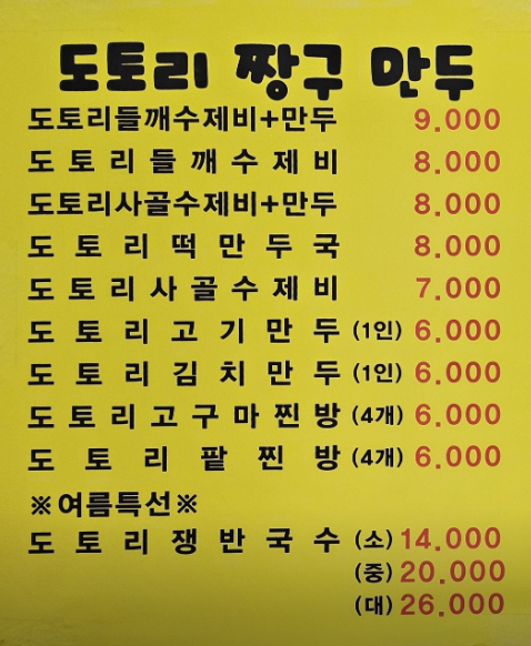 - 특징: 도토리 반죽 수제만두 / 당일 생산 / 택배 주문 가능