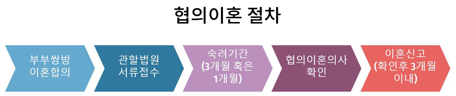 | 협의서 작성 | ① 재산분할, ② 위자료, ③ 자녀 양육, ④ 채무 분담, ⑤ 부동산 명의이전 포함 |