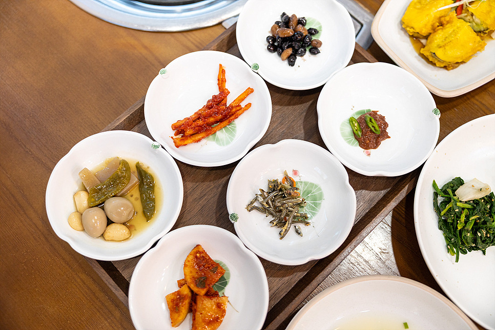 상 위에는 고급 한정식집에서 볼 법한 다양한 반찬이 정갈하게 차려지며, 갓 지은 솥밥까지 더해져 한 상의 완성도를 높였습니다.
