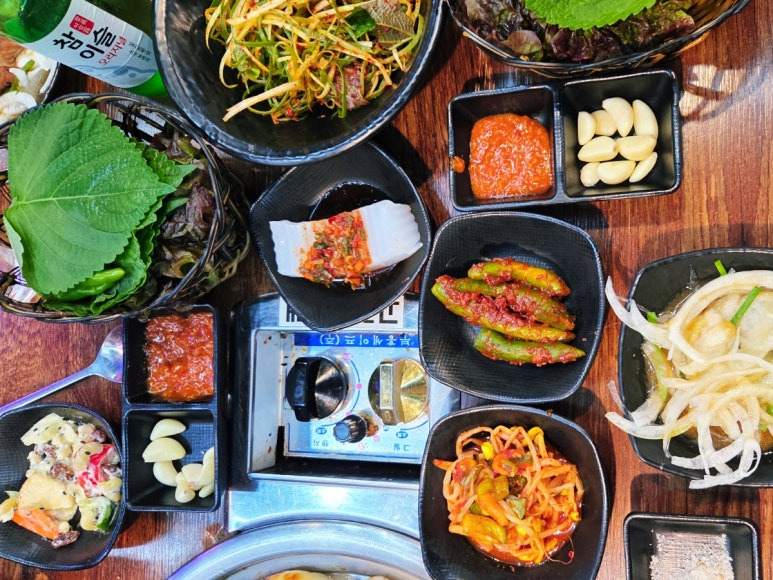 - 기본찬: 신선 채소, 파절임, 명이나물, 백김치 등