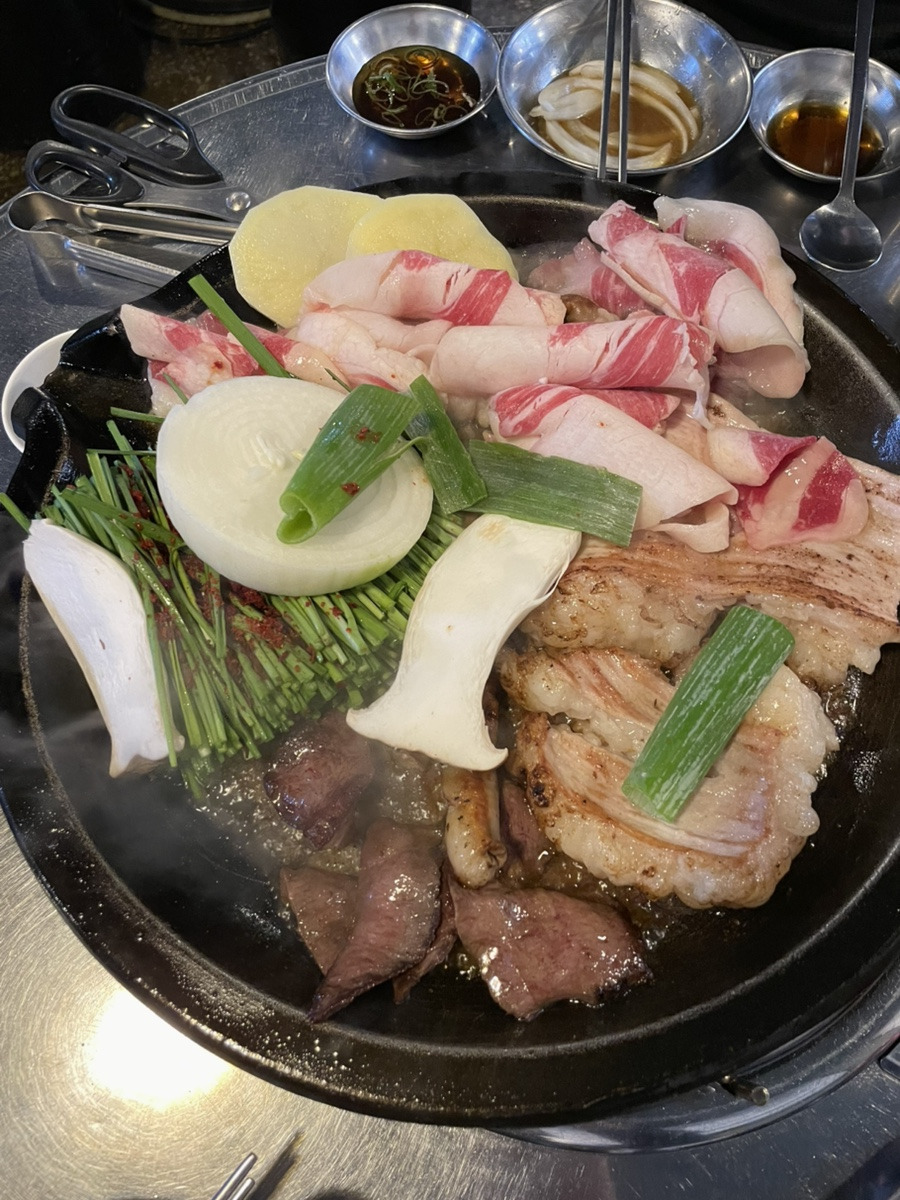 이곳의 또 다른 시그니처 메뉴인 ‘곱개장전골’ 역시 많은 손님들이 추천하는 메뉴로, 얼큰하고 깊은 국물 맛이 특히 매력적입니다. 육개장을 기본으로 여기에 깐양과 곱창을 듬뿍 넣어 끓여내기 때문에 한 숟가락만 떠도 진한 풍미가 입안 가득 퍼집니다.