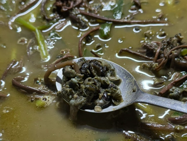 이 집의 대표 메뉴는 단연 고메기 고사리국입니다. 고메기는 제주 방언으로 보말을 뜻하는 말로, 서귀포 앞바다에서 오래전부터 흔히 잡히던 귀한 식재료입니다.