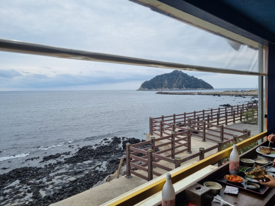 올레 할망집의 또 다른 큰 매력은 식사와 함께 즐기는 풍경입니다. 창밖으로 펼쳐진 서귀포 바다와 보목포구의 고요한 풍경은 이곳의 음식 맛을 한층 더 끌어올려 줍니다.