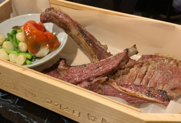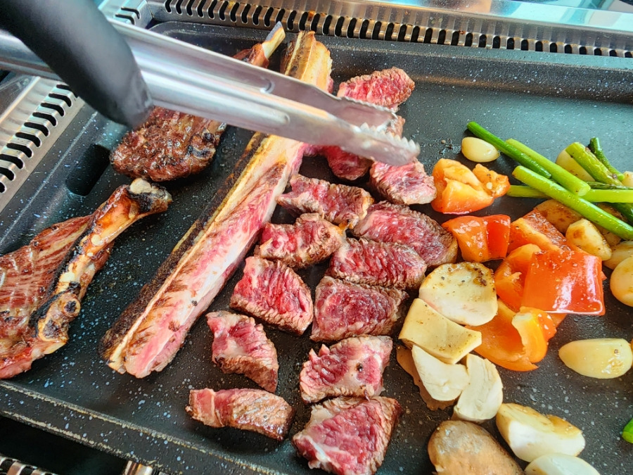 대표 메뉴인 토마호크 스테이크는 미리 완벽하게 구워져 테이블로 제공되며, 이후에는 개인 취향에 맞게 살짝 더 익혀 드실 수 있도록 세심하게 세팅해 주십니다. 직원분이 직접 고기를 손질하고 커팅해 주시기 때문에 가장 맛있는 상태의 고기를 편안하게 즐기실 수 있습니다.