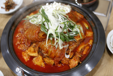 이곳의 또 다른 인기 메뉴는 묵은지 닭볶음탕입니다.