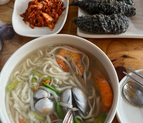 백합칼국수는 이 집을 대표하는 시그니처 메뉴로, 신선한 해물을 우려낸 육수에 백합을 아낌없이 사용해 시원하고 개운한 맛이 인상적입니다. 국물을 한 숟갈 떠먹는 순간, 인위적인 자극 없이도 바다의 깊은 맛이 입안 가득 퍼지며 속까지 따뜻해지는 느낌을 줍니다.