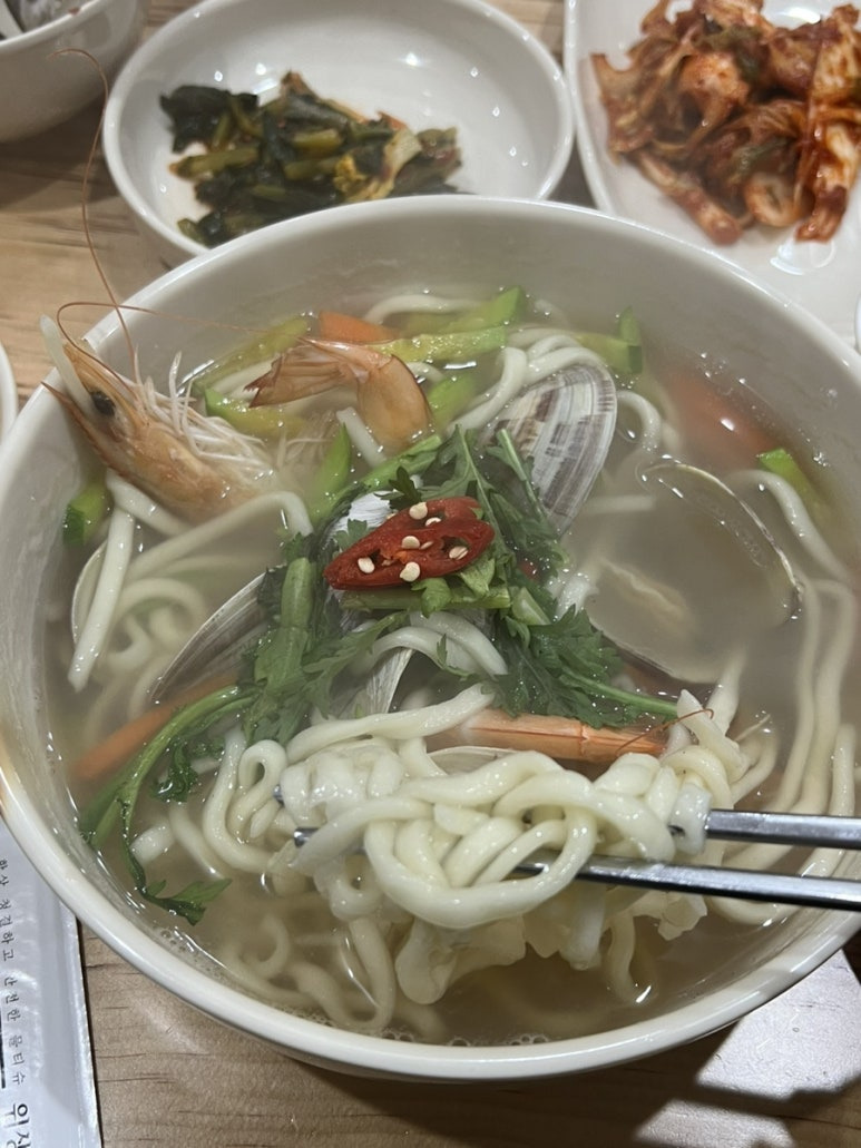 백합칼국수는 이 집을 대표하는 시그니처 메뉴로, 신선한 해물을 우려낸 육수에 백합을 아낌없이 사용해 시원하고 개운한 맛이 인상적입니다. 국물을 한 숟갈 떠먹는 순간, 인위적인 자극 없이도 바다의 깊은 맛이 입안 가득 퍼지며 속까지 따뜻해지는 느낌을 줍니다.