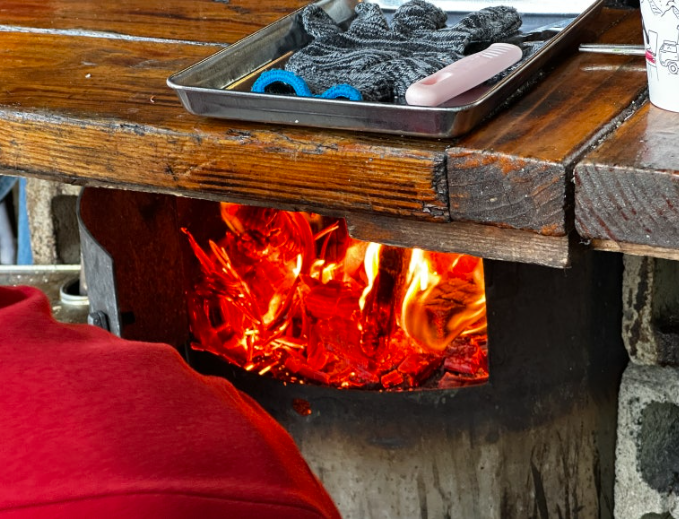 원조반동굴구이의 분위기는 꾸밈없는 로컬 식당 그 자체입니다. 세련된 인테리어보다는 굴을 편하게 먹을 수 있도록 구성된 공간으로, 장작 난로가 놓인 테이블 덕분에 겨울에는 마치 캠핑장에 온 듯한 느낌도 듭니다.