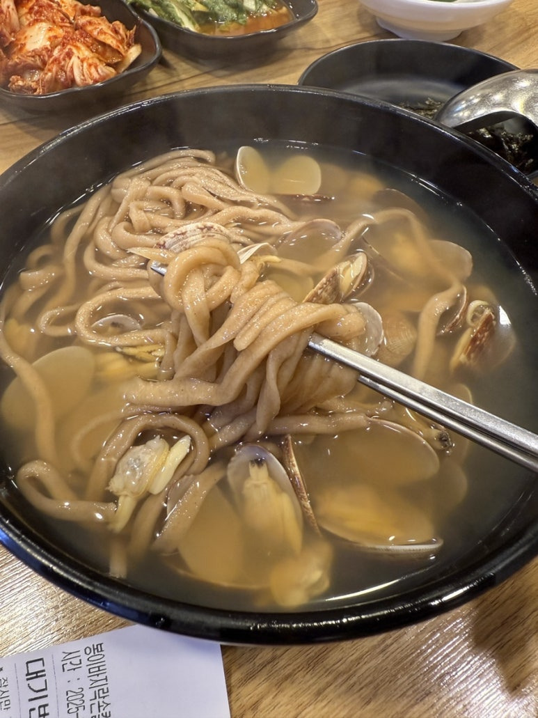 대표 메뉴인 바지락칼국수는 매장에서 직접 반죽해 숙성한 메밀면을 사용해 부드러우면서도 쫄깃한 식감을 자랑합니다. 국물은 양파와 대파, 무, 다시마, 해산물 등을 넣어 오랜 시간 우려내 시원하고 깊은 맛이 살아 있습니다. 바지락이 넉넉하게 들어가 국물과 건더기를 함께 즐기기 좋고, 자극적이지 않아 누구나 편안하게 먹을 수 있는 점이 특징입니다. 들깨칼국수 또한 고소한 풍미로 꾸준히 사랑받고 있습니다.