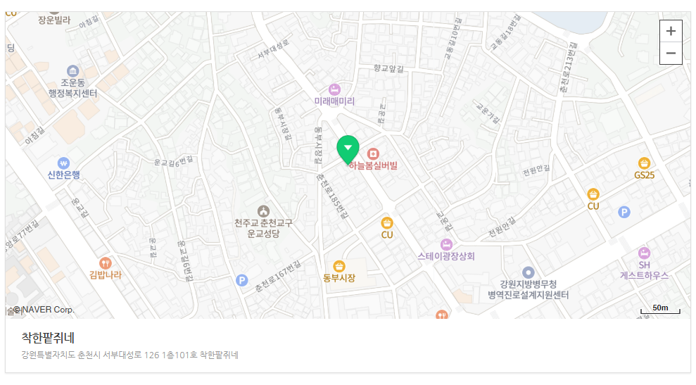 - 위치: 강원도 춘천시 서부대성로 126, 1층