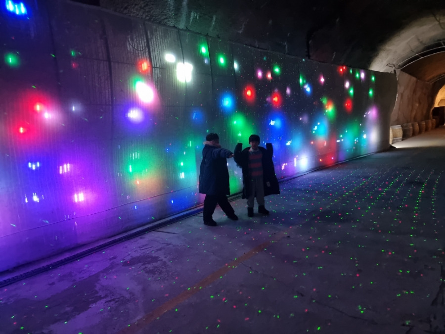 동굴 내부로 들어가면 은은한 조명과 함께 길게 이어진 통로가 인상적입니다.