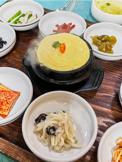특히 묵직한 놋그릇에 담겨 나오는 비빔밥은 시각적인 만족감은 물론, 식사가 끝날 때까지 따뜻함을 유지해 밥알의 탄력과 나물의 생기를 더욱 살려줍니다. 상 위에 함께 차려지는 폭탄 계란찜과 시원한 콩나물국, 그리고 전주의 정갈함이 느껴지는 여러 가지 반찬들은 ‘비빔밥 한 그릇’이라는 표현이 무색할 만큼 풍성한 한 상을 완성합니다.