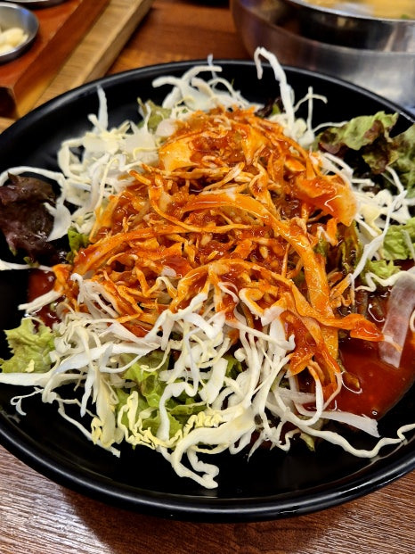 산더미 마늘족발과 함께 제공되는 막국수 또한 빼놓을 수 없는 구성입니다. 매콤하면서 새콤한 양념이 족발의 고소함과 완벽한 조화를 이루어 입안을 깔끔하게 정리해 주는 역할을 합니다.