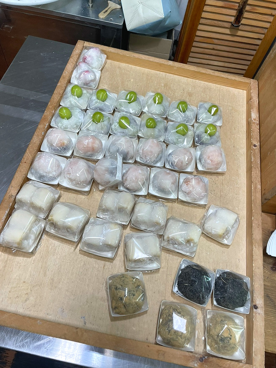 기본 모찌를 중심으로 쑥, 흑임자처럼 재료의 향이 분명한 종류가 준비되어 있고, 계절에 따라 과일모찌가 함께 나옵니다.