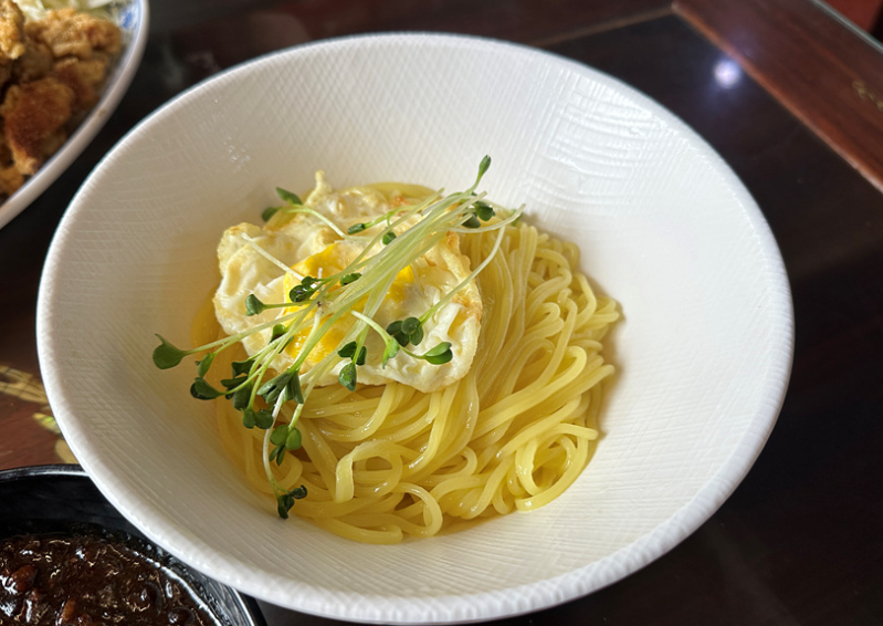 마지막에 닭 육수를 살짝 부어 비비면 면이 더욱 부드러워지고 고기가 마르지 않아 끝까지 맛있게 즐길 수 있어, 노련한 조리 경험이 그대로 느껴집니다.