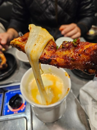 방송 이후 특히 화제가 된 구성은 치즈퐁듀와의 조합입니다. 뜨겁게 녹아 나온 치즈에 매콤한 쪽갈비를 찍어 먹으면, 매운맛은 부드럽게 중화되고 고소함은 한층 살아납니다.