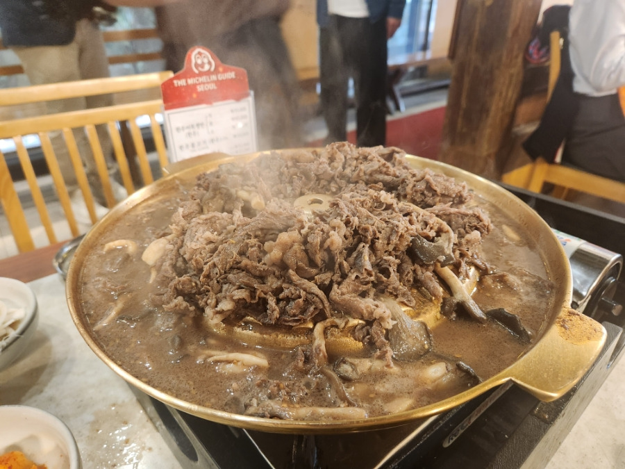얇게 썰어낸 다양한 소고기 부위와 신선한 채소, 버섯을 한데 모아 자작하게 끓여 먹는 방식으로, 뜨끈한 국물 한 숟갈만 떠먹어도 속이 편안해지는 느낌을 줍니다.