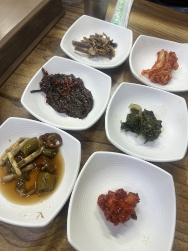 메인 메뉴인 생선구이뿐 아니라 함께 차려지는 밑반찬 구성 또한 이 집의 만족도를 높여줍니다. 관광객을 위한 형식적인 상차림이 아닌, 현지 단골들이 즐겨 찾는 백반집 스타일의 정갈한 반찬들이 한 상 가득 차려집니다.