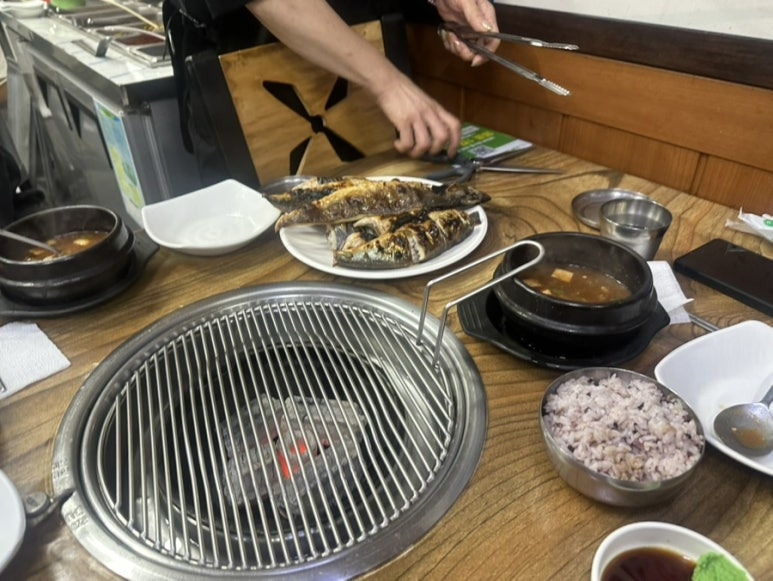 숯 위로 떨어지는 생선 기름이 연기를 만들고, 그 연기가 다시 생선에 배어들며 완성되는 훈연 향은 이 집 생선구이를 특별하게 만드는 핵심 요소입니다.