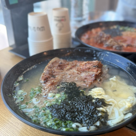 큼직한 왕뼈와 함께 쫄깃한 칼국수 면, 부드러운 수제비가 한 그릇에 어우러져 든든함을 책임지며, 얼큰한 맛과 담백한 맛 두 가지로 준비되어 선택의 폭도 넓습니다.