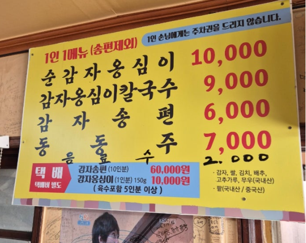 이 집 감자옹심이가 특별한 이유는 타협 없는 원칙에 있습니다. 요즘은 식감을 보완한다며 전분이나 밀가루를 섞는 경우가 많지만, 이곳에서는 그런 방식을 일절 사용하지 않으십니다.