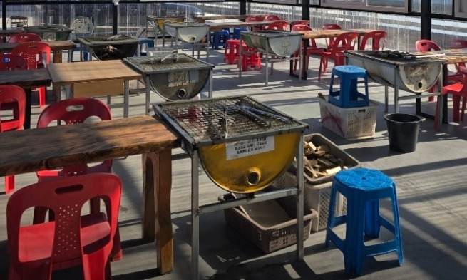 굴구이는 직화 방식으로 제공되어 또 다른 매력을 보여줍니다. 불 위에서 껍질이 하나둘 열리며 익어가는 굴은 은은한 불향이 더해져 고소함이 배가됩니다.
