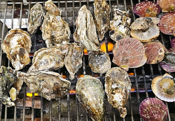 굴구이는 직화 방식으로 제공되어 또 다른 매력을 보여줍니다. 불 위에서 껍질이 하나둘 열리며 익어가는 굴은 은은한 불향이 더해져 고소함이 배가됩니다.