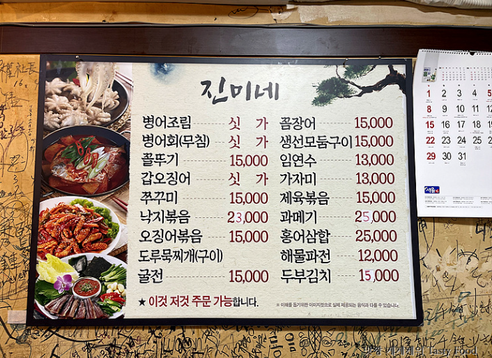 이 외에도 꼼장어, 생선구이, 해물모둠, 각종 전 메뉴까지 준비되어 있어 여러 명이 함께 방문해도 취향에 맞게 선택하기 좋습니다.