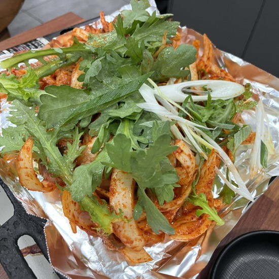 통통하게 살이 오른 쭈꾸미는 불판 위에서 익어가며 탄력 있는 식감을 유지하고, 양념은 과하지 않으면서도 입안에 또렷한 인상을 남깁니다. 함께 곁들여지는 양파와 쑥갓은 매운맛을 정리해 주는 동시에 향긋함을 더해주어 끝까지 질리지 않게 즐길 수 있습니다.