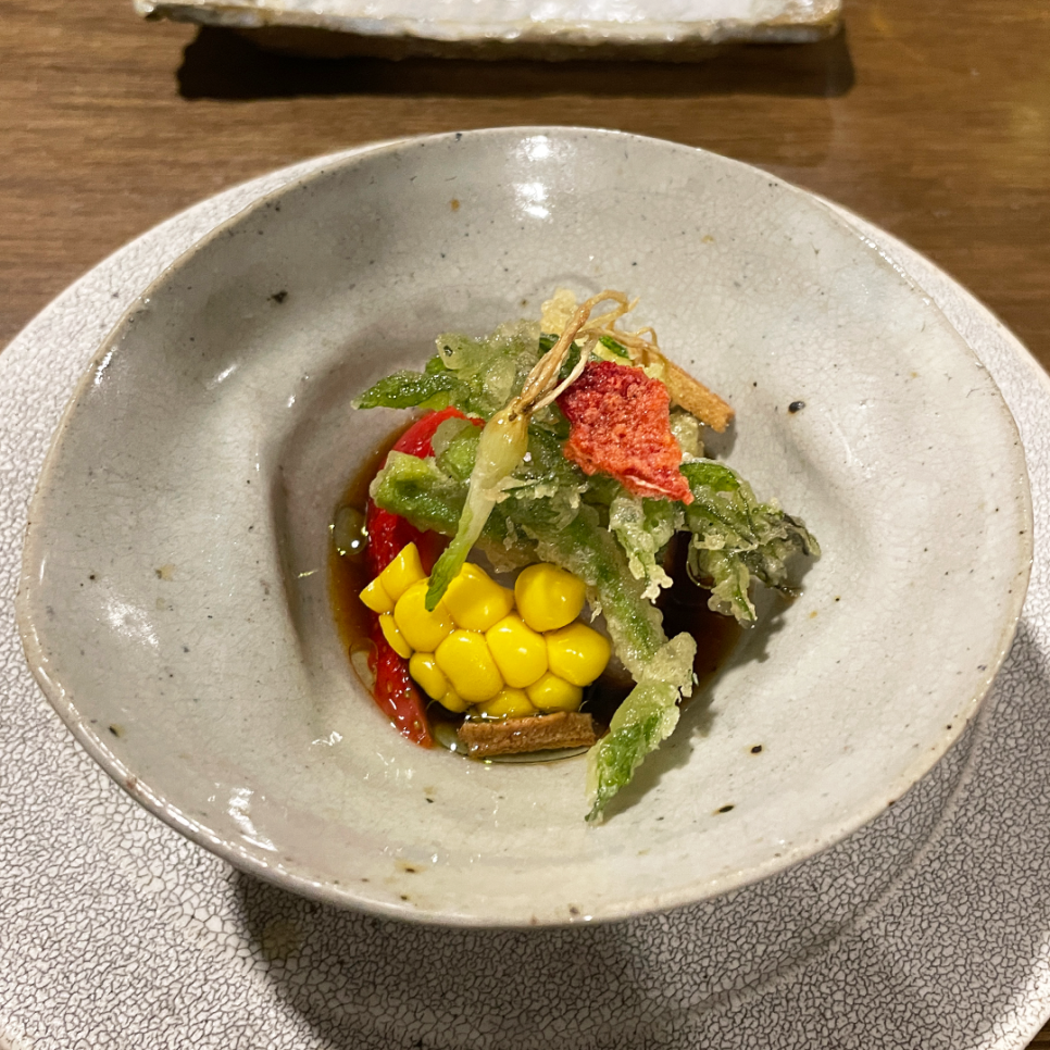 코스는 전반적으로 일본 전통 요리의 틀을 따르되, 메밀을 다양한 방식으로 해석해 지루할 틈 없이 이어집니다. 차갑게 즐기는 소바부터 따뜻한 육수와 어우러진 요리, 메밀을 활용한 창의적인 일식 메뉴까지 흐름이 매끄럽고 완성도가 높아 마지막 한 접시까지 집중하게 만듭니다.