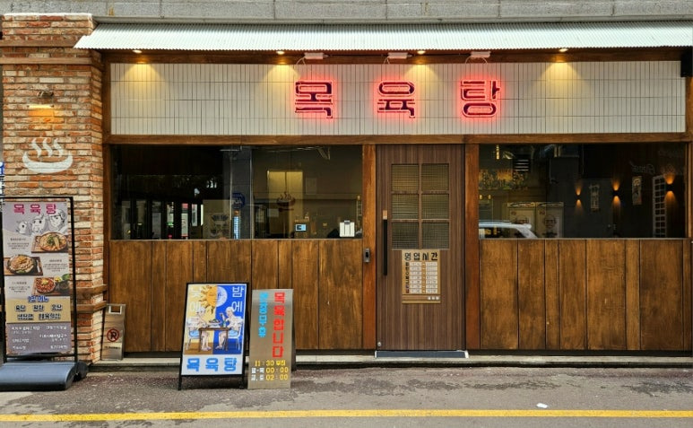 경기도 안산에 위치한 목육탕은 이름 그대로 목욕탕을 연상시키는 인테리어가 가장 큰 특징입니다. 외관부터 내부까지 타일과 간판, 소품 하나하나가 옛 동네 목욕탕을 떠올리게 만들어 처음 방문하는 분들도 자연스럽게 웃음이 나오는 분위기입니다.