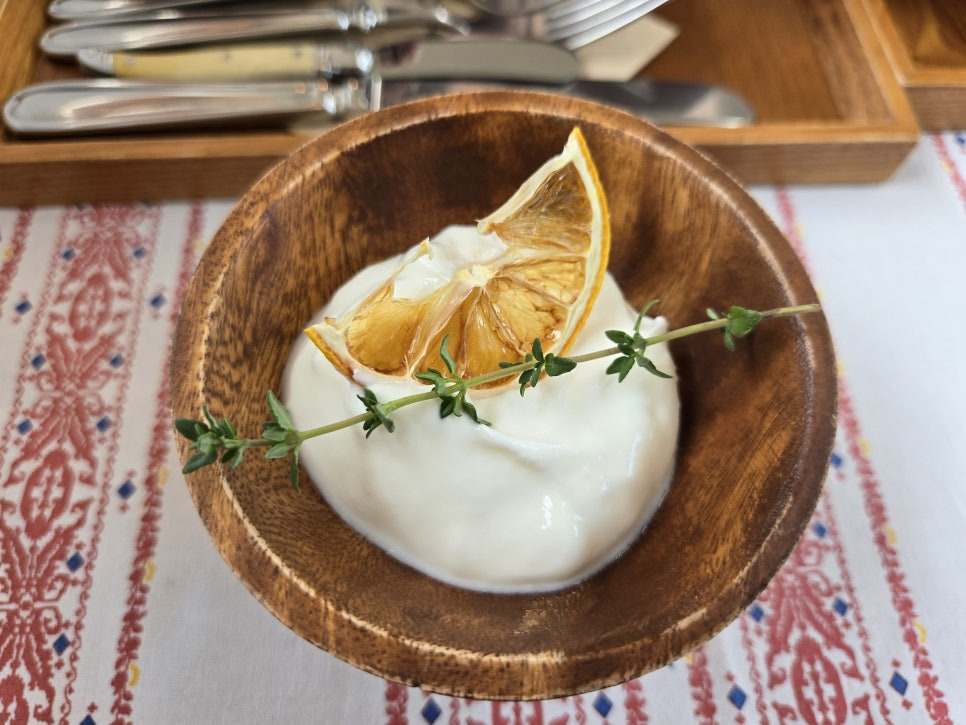 대표적인 메뉴는 단연 불가리아 요거트입니다. 불가리아 유산균을 사용해 직접 발효시킨 요거트는 꾸덕하면서도 산뜻한 산미가 살아 있고, 일반 요거트와는 확연히 다른 깊은 맛을 느낄 수 있습니다.