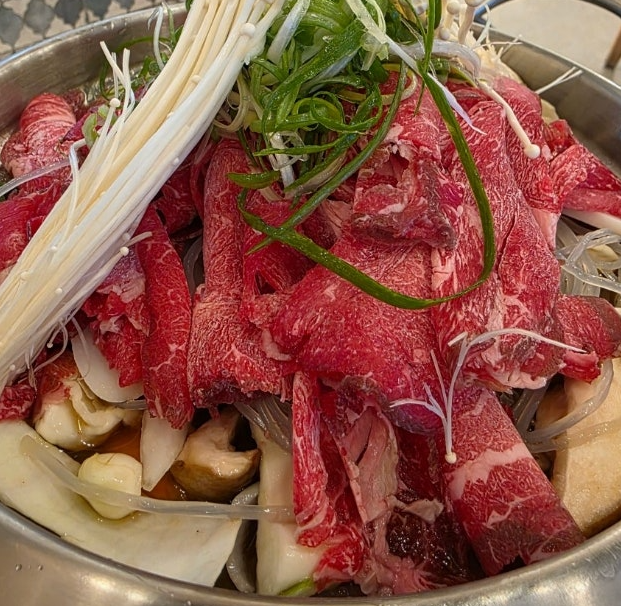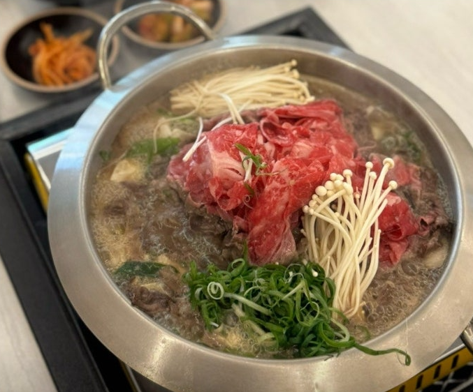 얇게 손질된 한우 불고기는 국물에 살짝만 익혀도 부드러운 식감을 유지하며, 여러 번 리필을 해도 고기의 품질이 일정하게 유지되는 점이 인상적입니다.