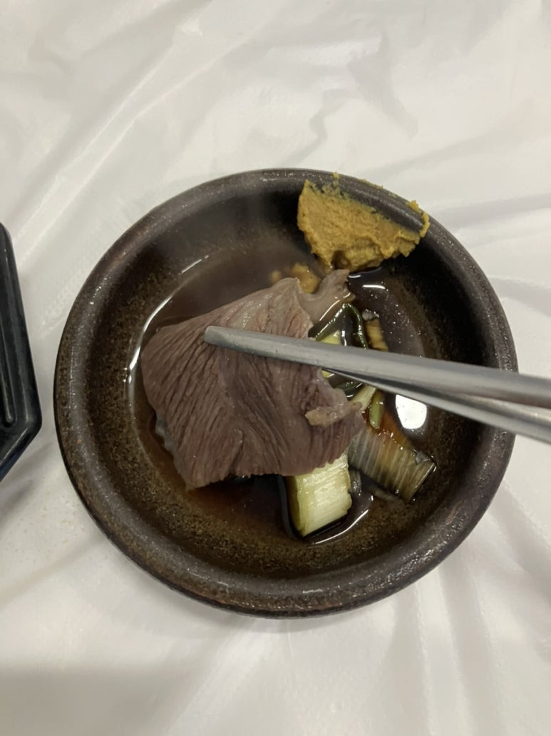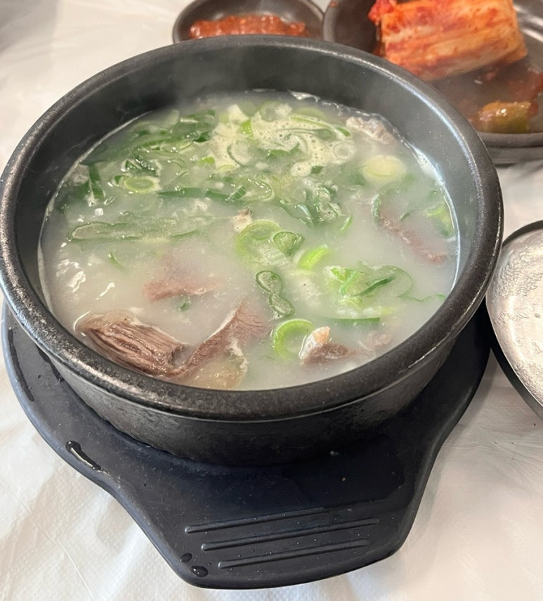 파 뿌리를 넣어 삶아 잡내를 제거하고, 기름기를 하나하나 손으로 걷어낸 뒤 손님상에 오르기 때문에 부드러우면서도 쫀득한 맛이 살아 있습니다. 밥을 말아 국물과 함께 먹으면 부담스럽지 않고 끝까지 깔끔합니다.