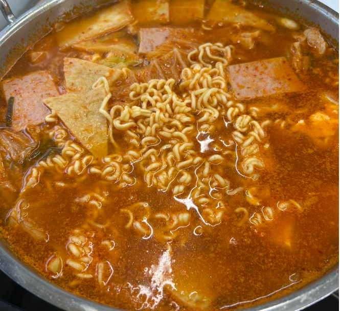 대신 라면, 어묵, 햄, 두부, 고기 등 토핑을 추가해서 취향껏 먹을 수 있어요.