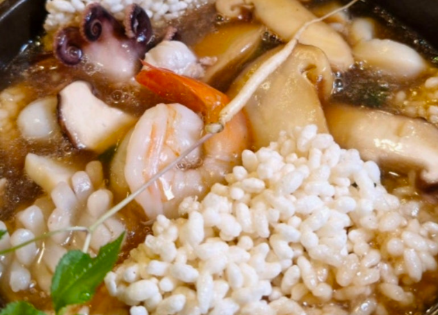 이 과정을 통해 닭기름의 고소함과 버섯의 진한 향이 국물에 배어들어, 자극적이지 않으면서도 오래 기억에 남는 맛을 완성합니다. 여기에 뜨거운 국물에 부어 먹는 바삭한 누룽지가 국물을 머금으며 쫀득한 식감으로 변해, 한 숟갈 한 숟갈이 자연스럽게 이어집니다.