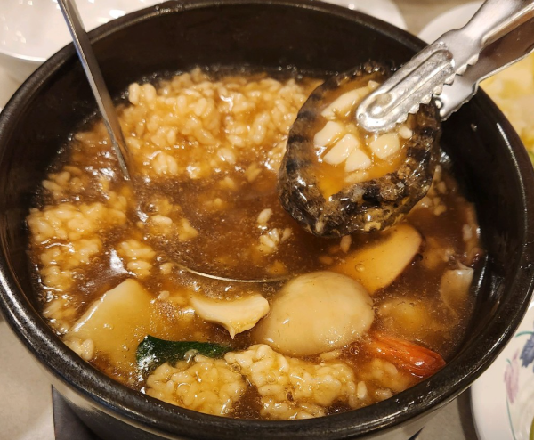여기에 자연산 송이버섯과 은행까지 더해져 재료만 봐도 정성이 느껴지는 구성입니다. 보기만 해도 기운이 차오르는 비주얼에, 국물 한 숟갈을 뜨는 순간 깊고 묵직한 감칠맛이 입안을 가득 채워 겨울철 보양식으로 손색이 없다는 평가를 받았습니다.