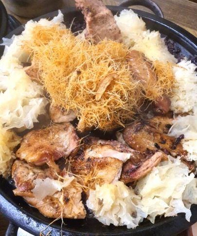 🍴 닭과 밥을 함께 구운 철판 위에 올려 먹는 방식은 마치 한상차림처럼 풍성한 느낌을 준다.