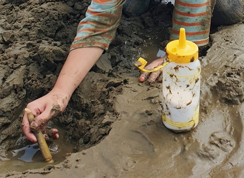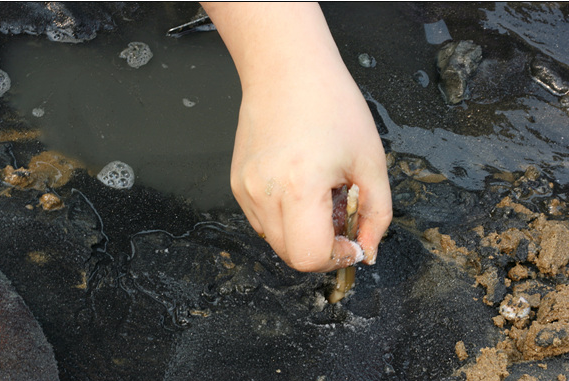 대맛조개는 길쭉하고 납작한 직사각형 모양의 껍질을 가진 조개로, 서해안 갯벌 깊숙이 숨어 사는 것이 특징입니다. 현장에서는 소금을 구멍에 살짝 뿌리면 조개가 쑥 올라오는 독특한 채취 방식이 소개되었는데, 그 모습이 무척 흥미로워 아이들과 함께하는 체험 활동으로 특히 인기가 높습니다.