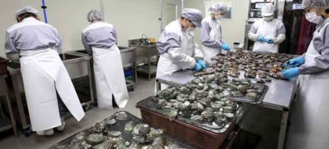 완도는 국내 전복 생산의 중심지로, 수온과 염도가 안정적인 해역에서 미역과 다시마 같은 천연 해조류를 먹여 키운 전복이 특징입니다. 이곳 공장은 양식장과 가까운 입지 조건을 활용해 수확 직후 바로 세척과 선별 작업을 진행합니다.
