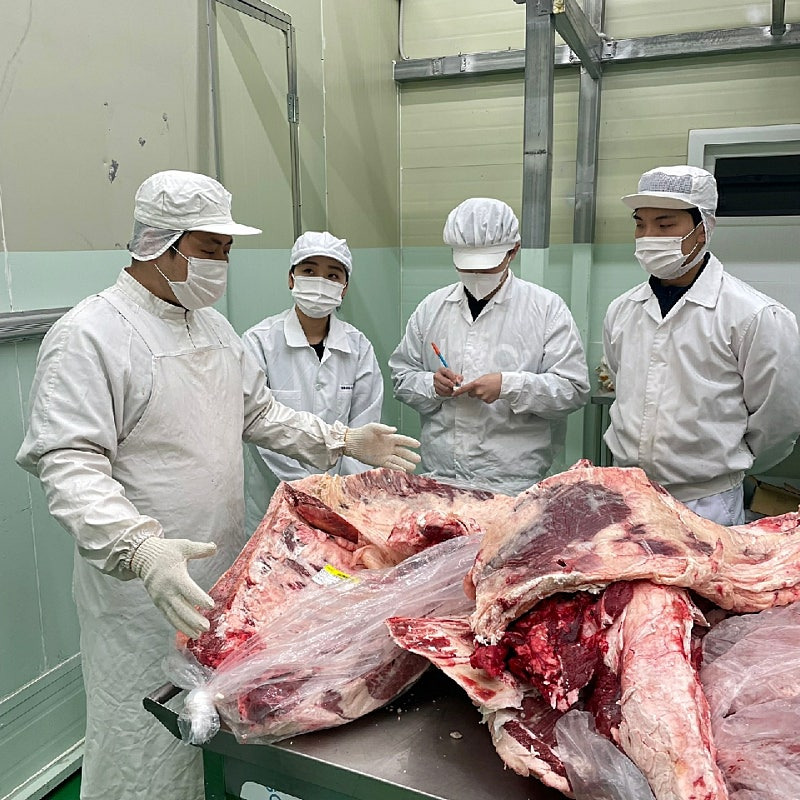 입고된 지육은 15도 이하 저온 작업장에서 빠르게 부위별로 분할되며, 불필요한 근막과 과도한 지방을 정리해 최적의 상태로 손질됩니다. 등심과 채끝은 스테이크용으로 두께를 정밀하게 맞추고, 갈비살과 업진살 등 특수 부위는 일정한 규격으로 커팅해 선물세트에 담습니다.